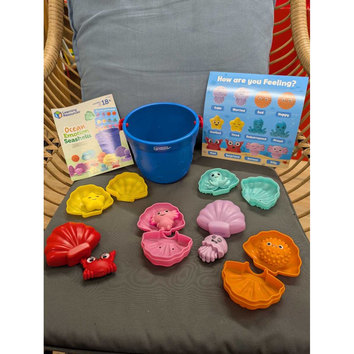 - Learning Resources 'Ocean Emotions Seashells' (6 double sided ocean creatures, 6 shells and 1 bucket)