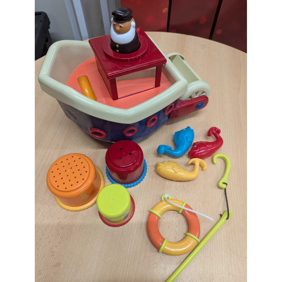 - BToys 'Fish n Splish' boat bath toy (boat with lid, captain, fishing hook, life ring, 3 fish and 3 stacking cups)