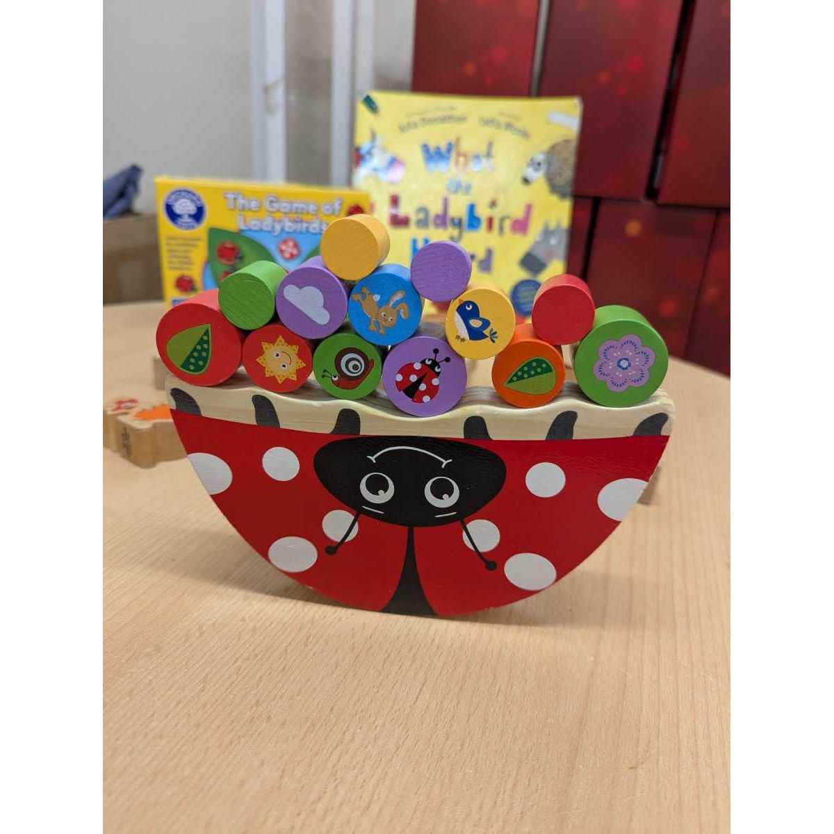 - wooden balancing ladybird game (ladybird and 13 coloured counters)
